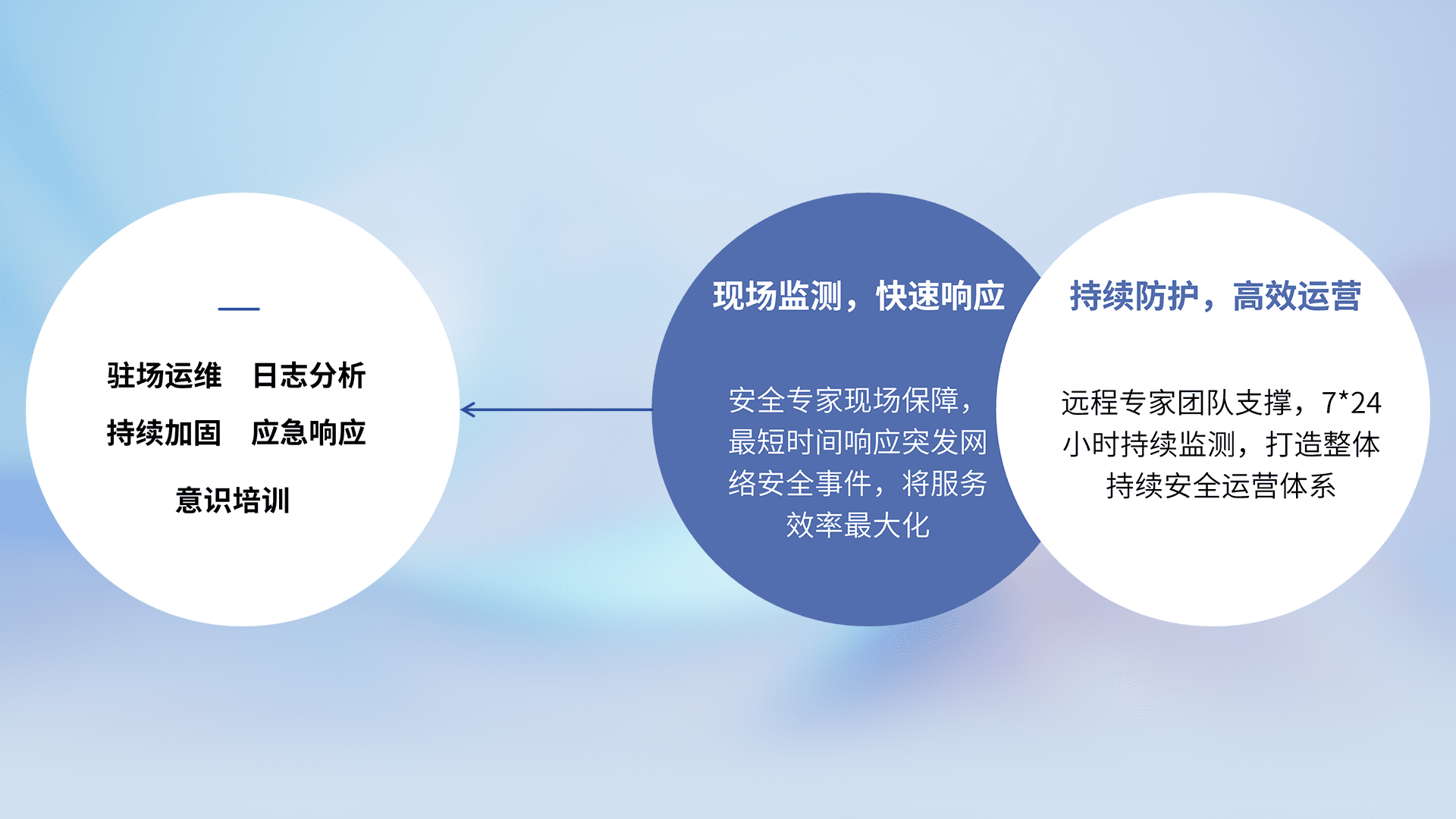 7X24小时持续监测安全事件,保持安全策略有效性,降低资产脆弱性风险,,,精准拦截黑客攻击,,,,减少被黑客利用的机会,,第一时间遏制,,降低损失。。